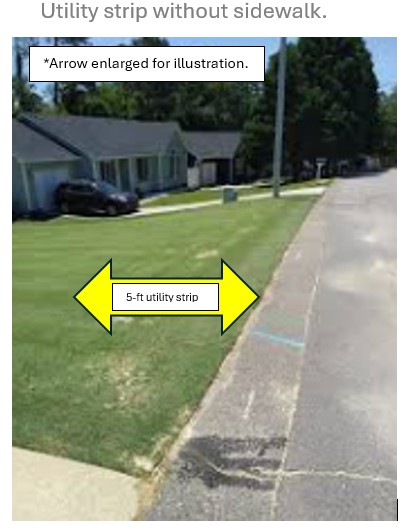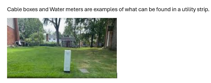 Right-of-way encroachment agreements are reviewed by the Town Manager for any work performed in the right-of-way or utility strips. This includes tasks such as installing fiber cable (AT&T, Spectrum, Ting) or gas pipelines, such as those installed by Dominion Energy. Below are some examples of utility strips.